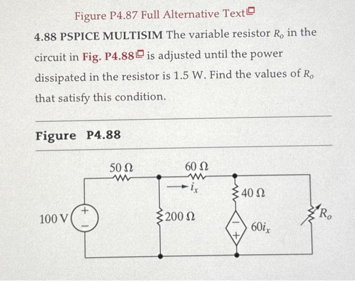 Solved 4.88 PSPICE MULTISIM The variable resistor Ro in the